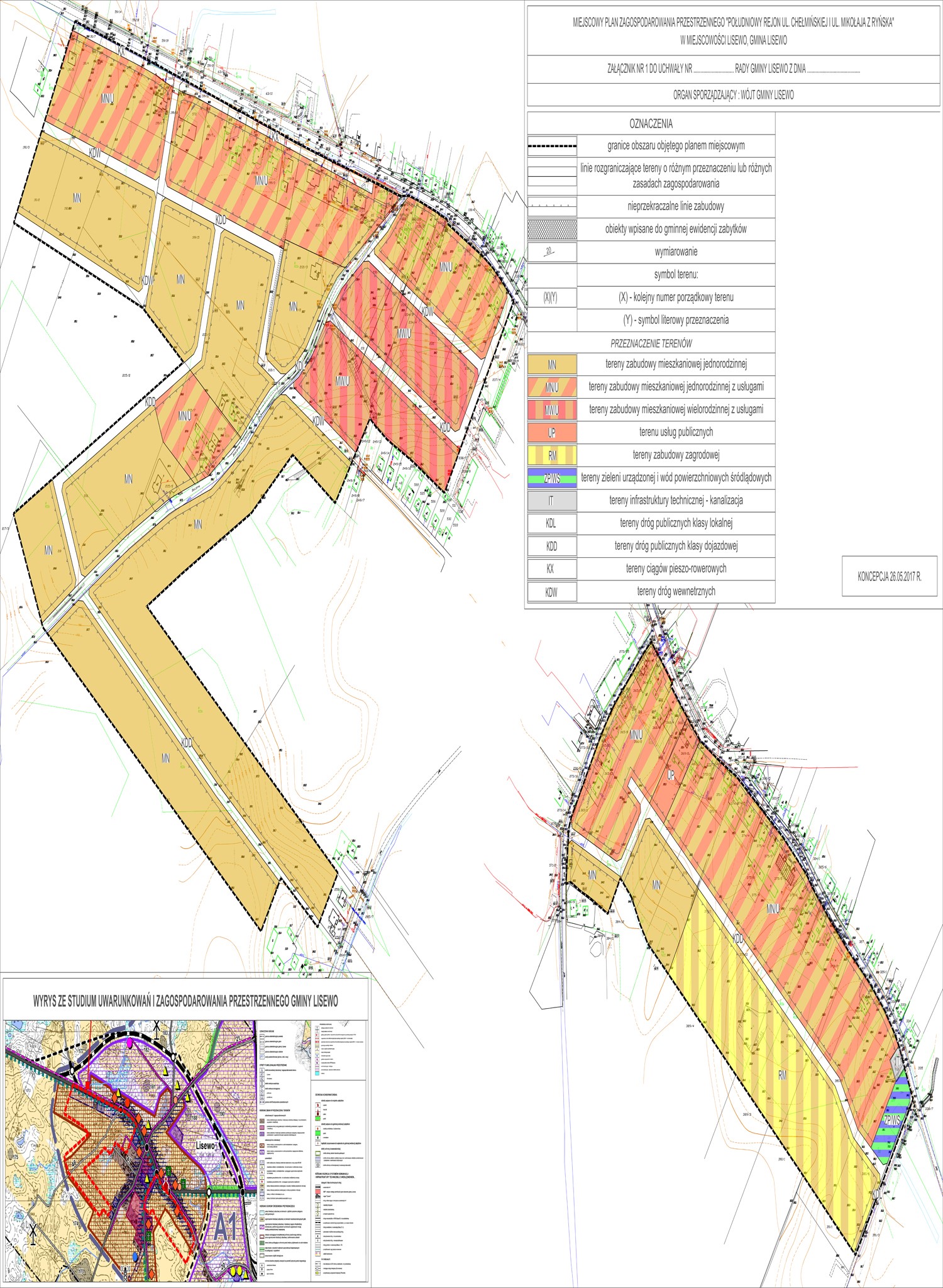 Przedkładamy mapę wsi Lisewo z oznaczeniem terenu, który jest objęty planem wraz z legendą określającą funkcje poszczególnych obszarów. Prosimy o Państwa opinie oraz zapraszamy do zgłaszania potrzeb i oczekiwań, które przyczynią się do opracowania dokumentu, który będzie spełniał Państwa oczekiwania. Zapraszamy mieszkańców Gminy Lisewo, przedsiębiorców, organizacje pozarządowe,  służby i straże, sołtysów, radnych, emerytów i rencistów,  inwestorów oraz młodzież do aktywnego uczestnictwa w procesie konsultacji dotyczących Miejscowego Planu Zagospodarowania Przestrzennego dla południowej części Lisewa. Gmina Lisewo posiada Studium uwarunkowań i kierunków zagospodarowania przestrzennego przyjęte Uchwałą Nr X/53/2016 Rady Gminy Lisewo z dnia 31 sierpnia 2015 r. Obszar objęty uchwałą w sprawie sporządzania planu, zgodnie z obowiązującym studium uwarunkowań i kierunków zagospodarowania przestrzennego gminy Lisewo, znajduje się w strefie koncentracji  zabudowy i zagospodarowania terenu A-1 Lisewo i oznaczony jest jako tereny  rozwoju z przeznaczeniem na cele mieszkaniowe i usługowe w tym usługi publiczne. Możecie Państwo wyrazić swoje zdanie w zakresie koncepcji wypracowanej przez interesariuszy planu w ramach przeprowadzonych spotkań konsultacyjnych i spacerów badawczych w kwietniu 2017 roku. Projekt „Dobre konsultacje, dobry plan” współfinansowany ze środków Unii Europejskiej w ramach Europejskiego Funduszu Społecznego.